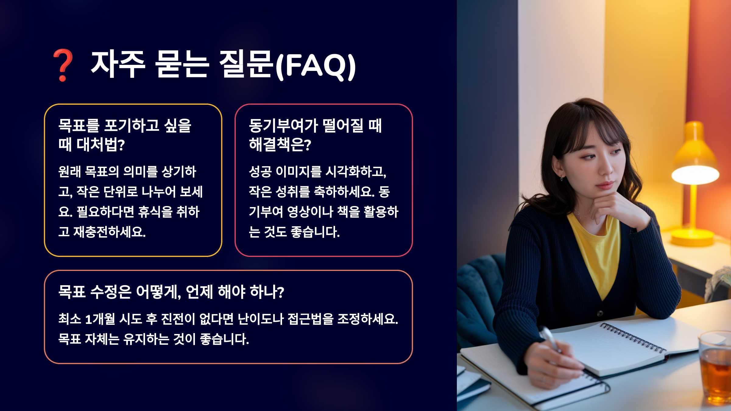 이제 자기계발 여정의 실전 Q&A, ❓ FAQ로 넘어갈 준비되셨나요? 바로 이어드릴게요~! 🙌