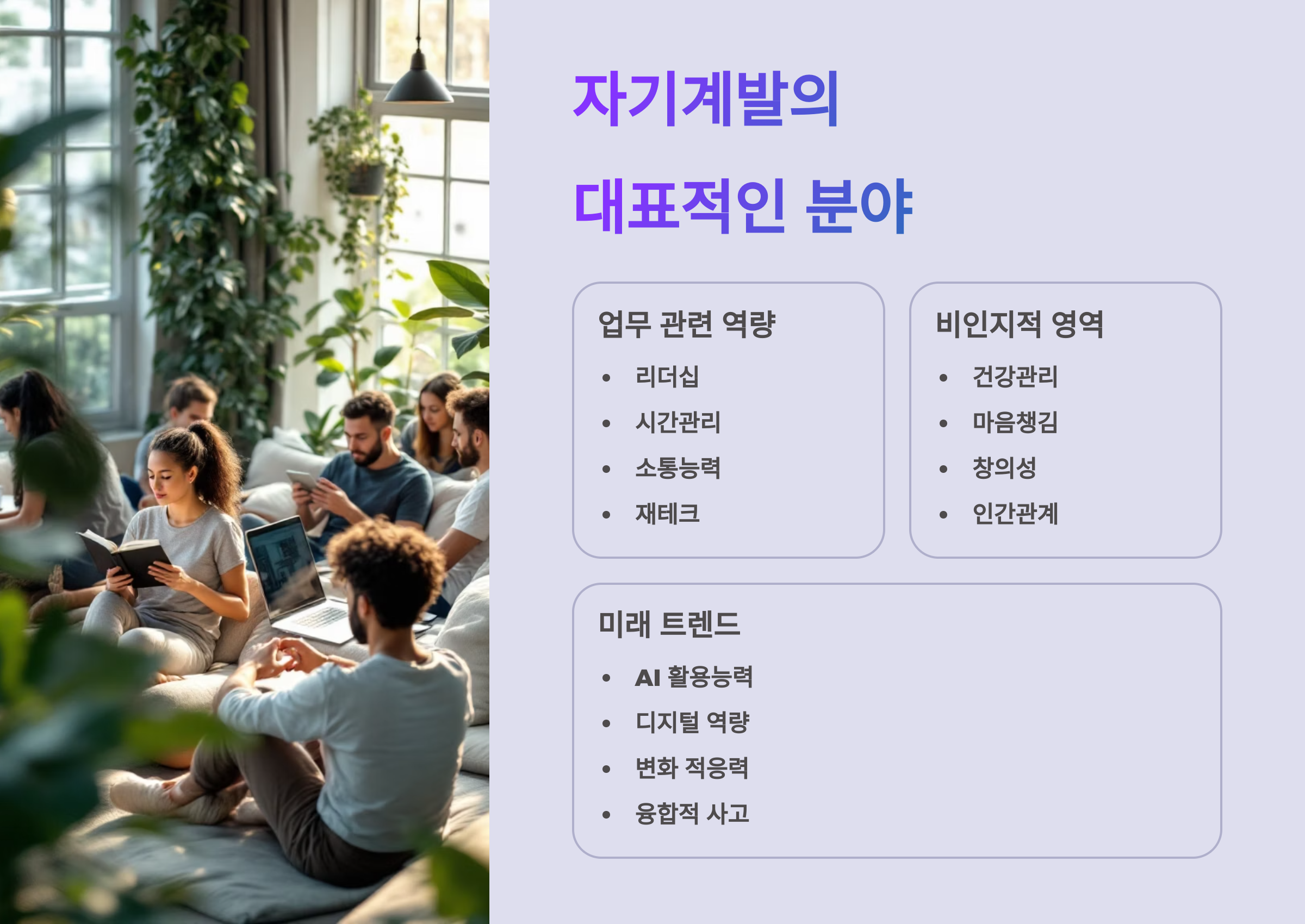 이제 📚 자기계발의 대표적인 분야 어떤 영역에서 시작하면 좋을지 구체적으로 알려드릴게요!