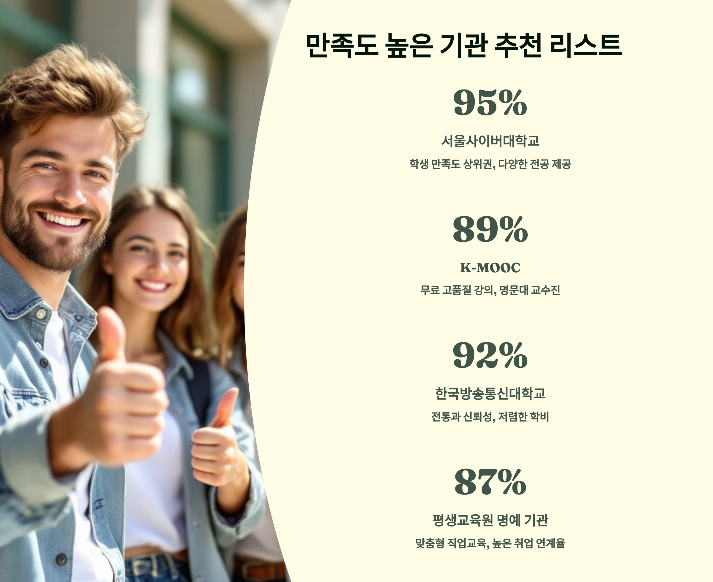 - ✅ 서울디지털대학교 – 사이버대 중 학비·콘텐츠 만족도 상위