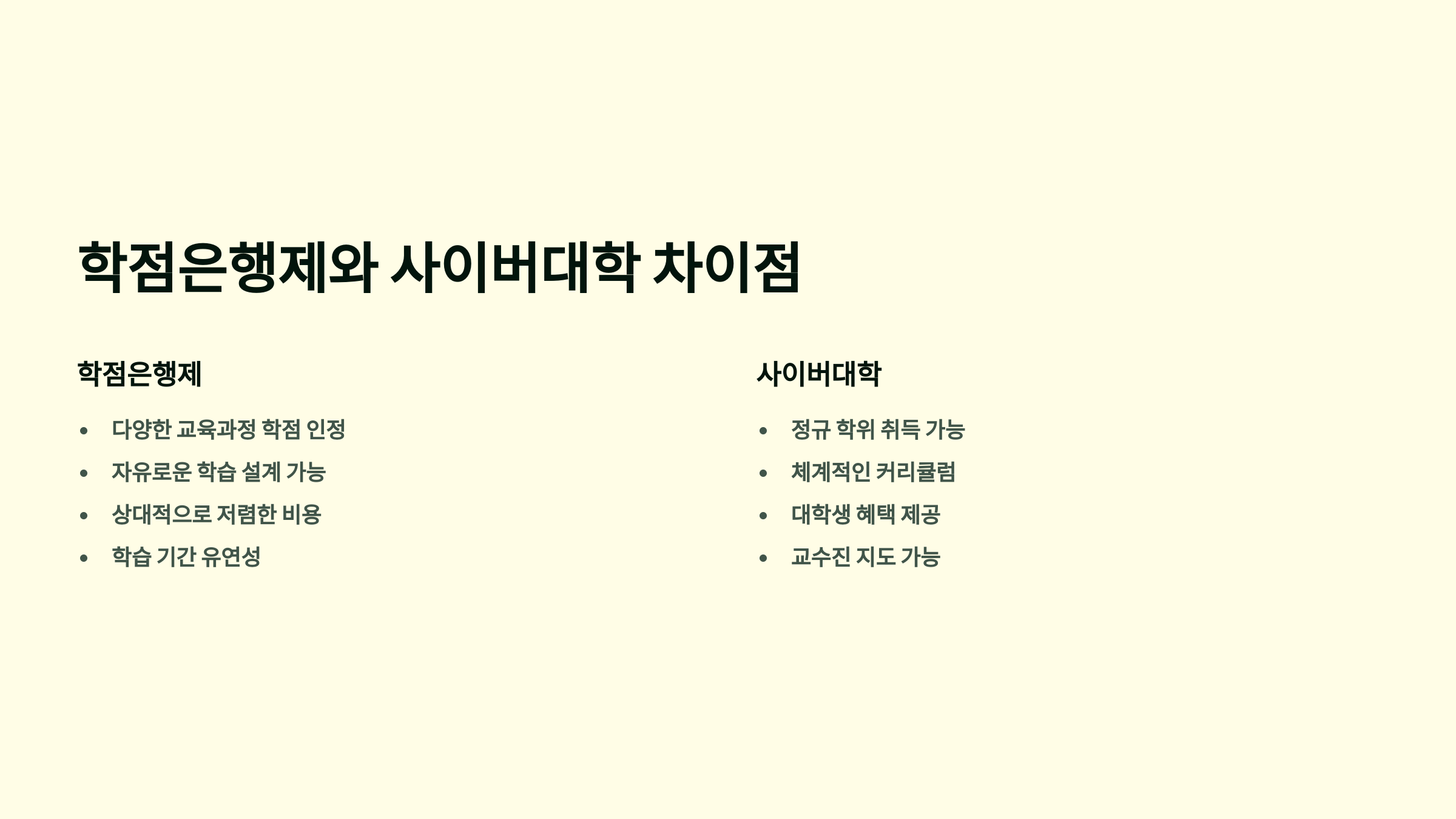 - 🎓 학점은행제 vs 사이버대학 차이점 확실히 파악