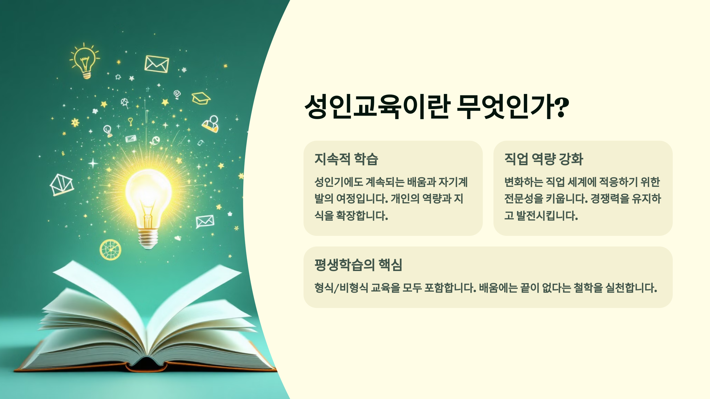 📘 성인교육은 이제 선택이 아닌 필수 시대가 되었어요. 디지털 격차 해소, 재취업 준비, 새로운 도전을 위해 많은 분들이 평생교육기관이나 온라인 대학에 관심을 갖고 있어요.