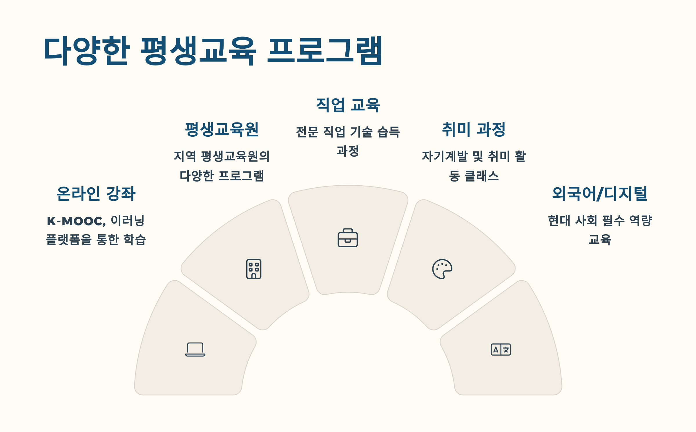 🏫 평생교육은 학교가 아닌 우리 생활 속 가까운 곳에서 이루어져요. 이름도 낯설고 복잡하게 느껴질 수 있지만, 알고 보면 누구나 쉽게 접근할 수 있어요.