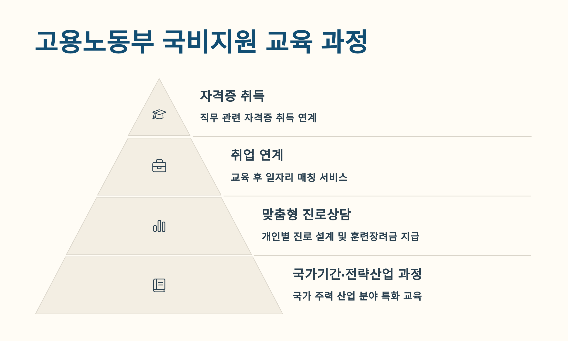 교육비는 최대 85~100%까지 국비로 지원되며, 저소득층이나 청년, 경력단절 여성은 추가 지원금도 받을 수 있어요. 훈련장려금과 출석 수당까지 받을 수 있으니, 등록만 잘 해도 돈을 받으며 배울 수 있는 제도라는 거예요. 💰📚
