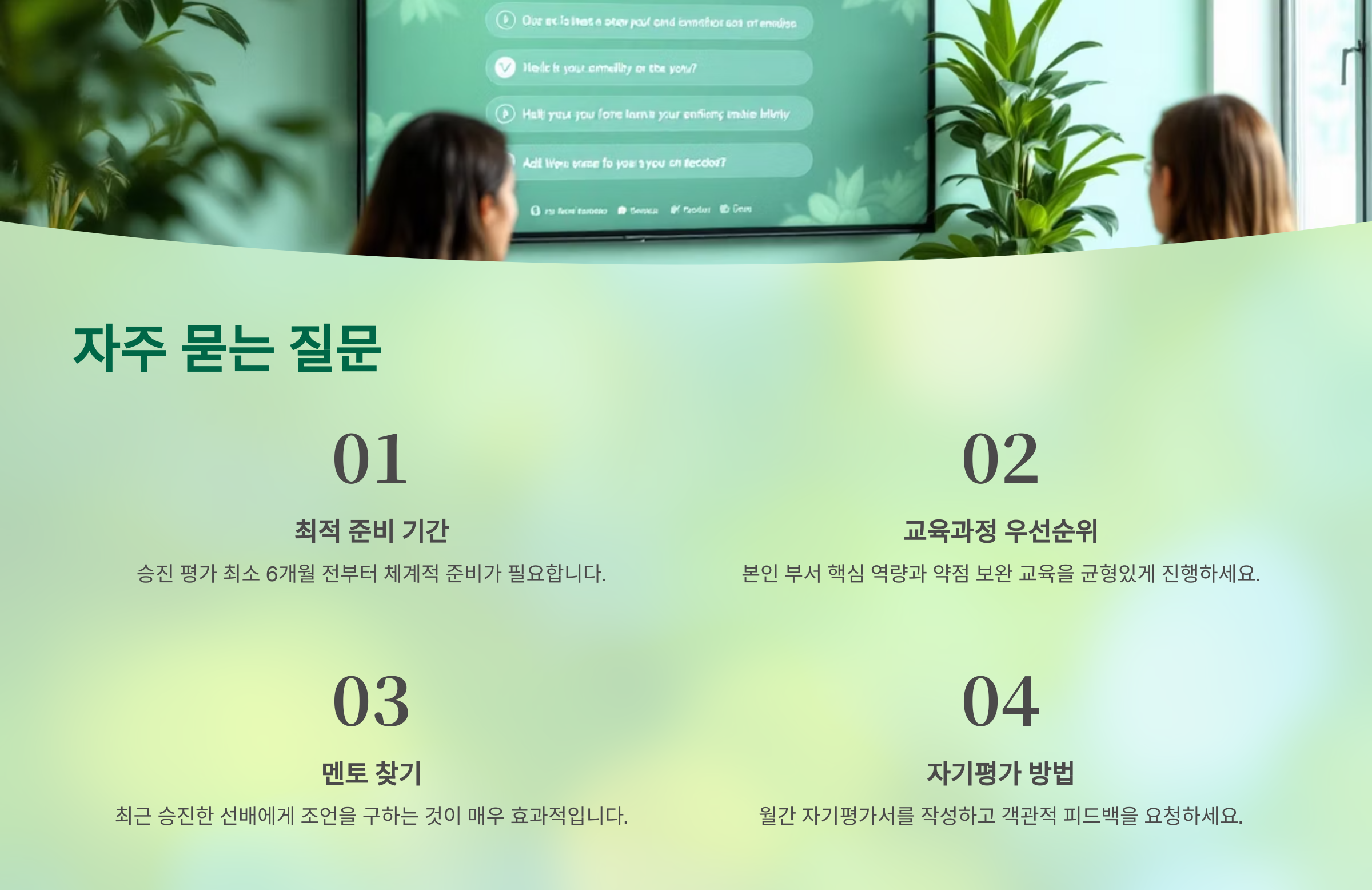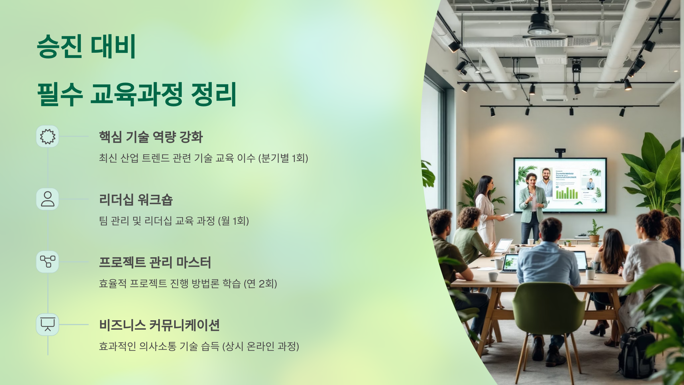 교육은 승진을 위한 준비이자, 그 이후를 위한 투자예요. 배운 걸 실무에 녹여내는 태도와 피드백이 함께하는 사람, 그 사람이 진짜 승진을 준비한 사람이에요! 🌱📘