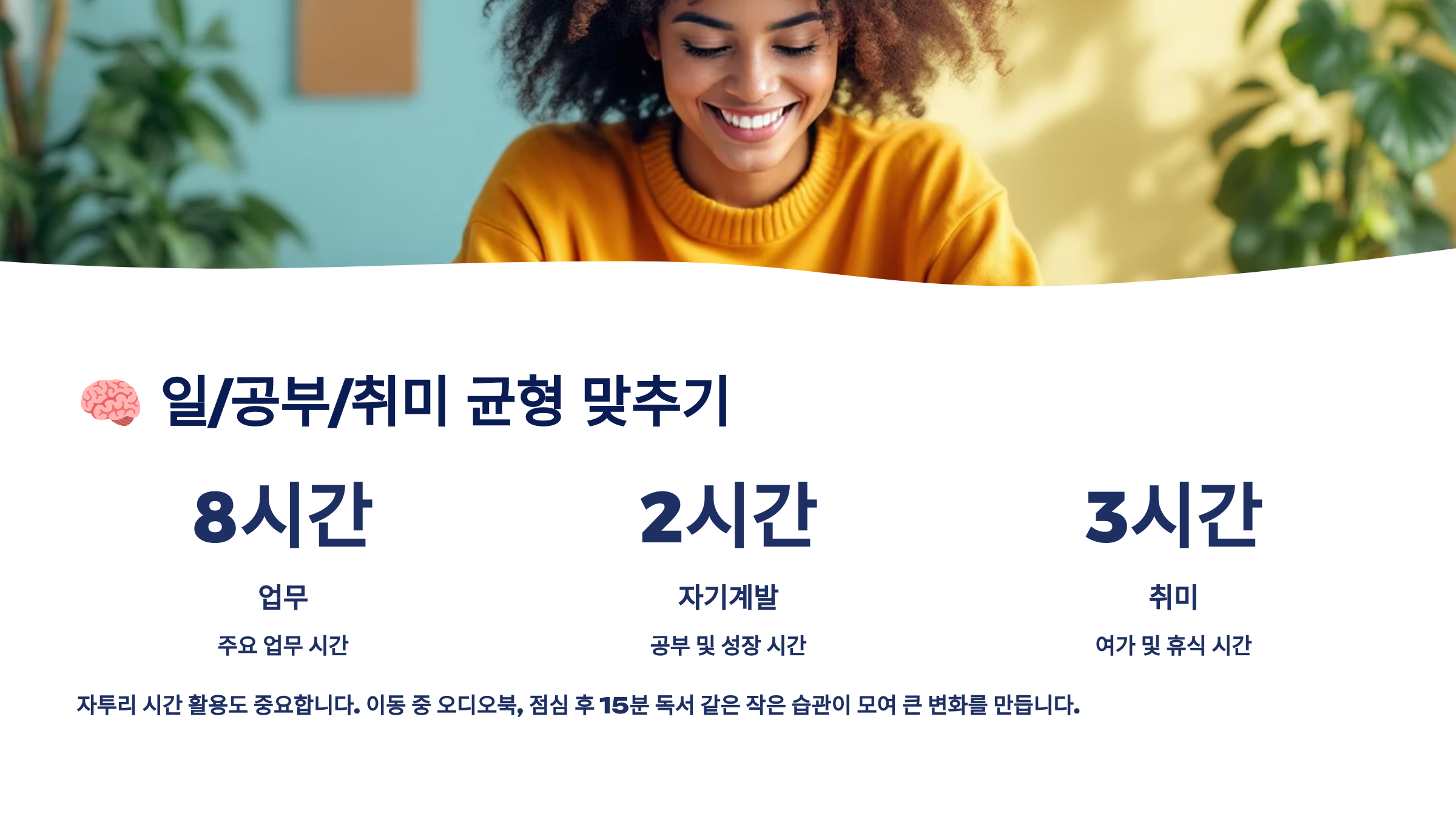 → 우선순위만 명확하게 정하고, 하루 중 아무 때나 실행 가능하게 설계하면 스트레스가 줄어요. ✅🎨