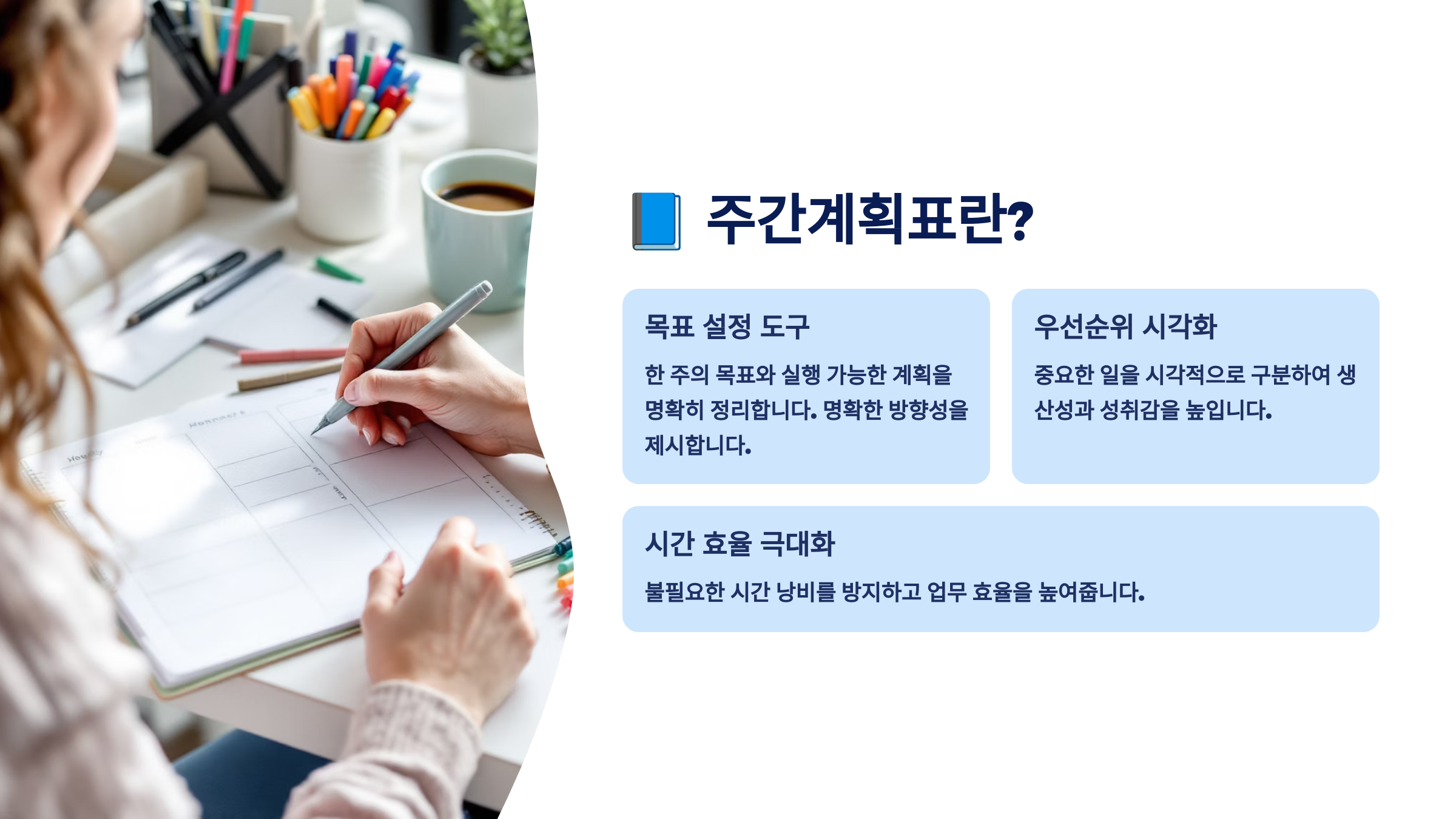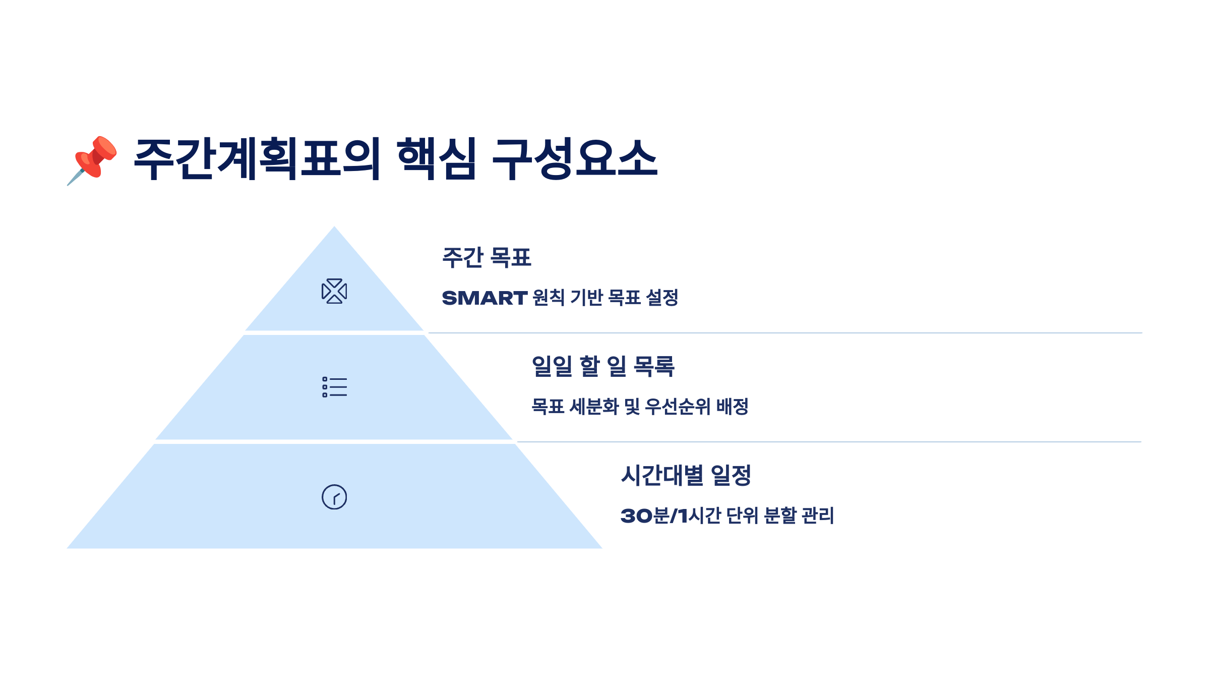 주간계획표는 단순한 일정 정리를 넘어, 시간의 우선순위를 스스로 정하고 삶의 흐름을 컨트롤하는 도구예요. 특히 하루 단위로는 해결할 수 없는 일들을 주간 단위로 쪼개 정리하면 목표 달성 확률이 훨씬 높아져요. 🎯📘