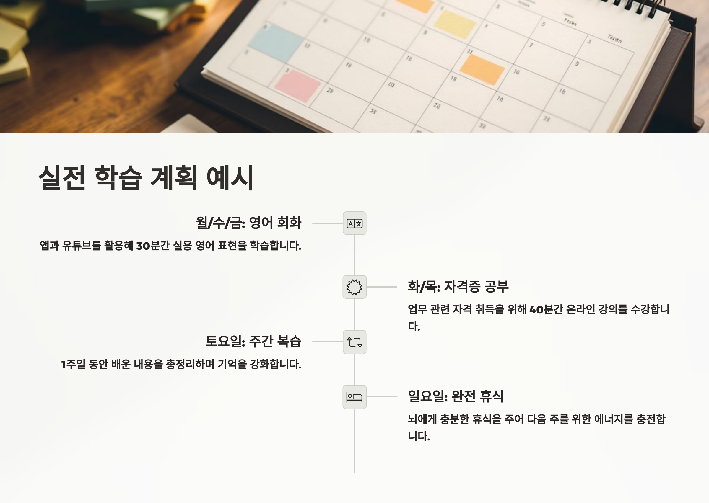 그럼 다음 섹션에서 📝 실전 학습 계획 예시를 함께 살펴볼까요? ✏️