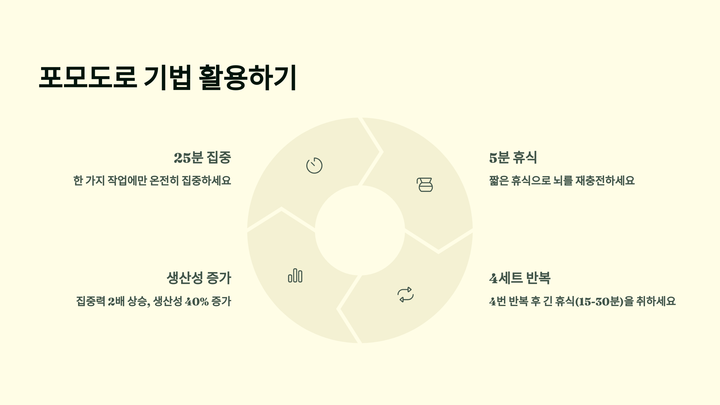 포모도로 기법을 꾸준히 활용하면 집중력도, 성취감도 눈에 띄게 달라질 거예요!