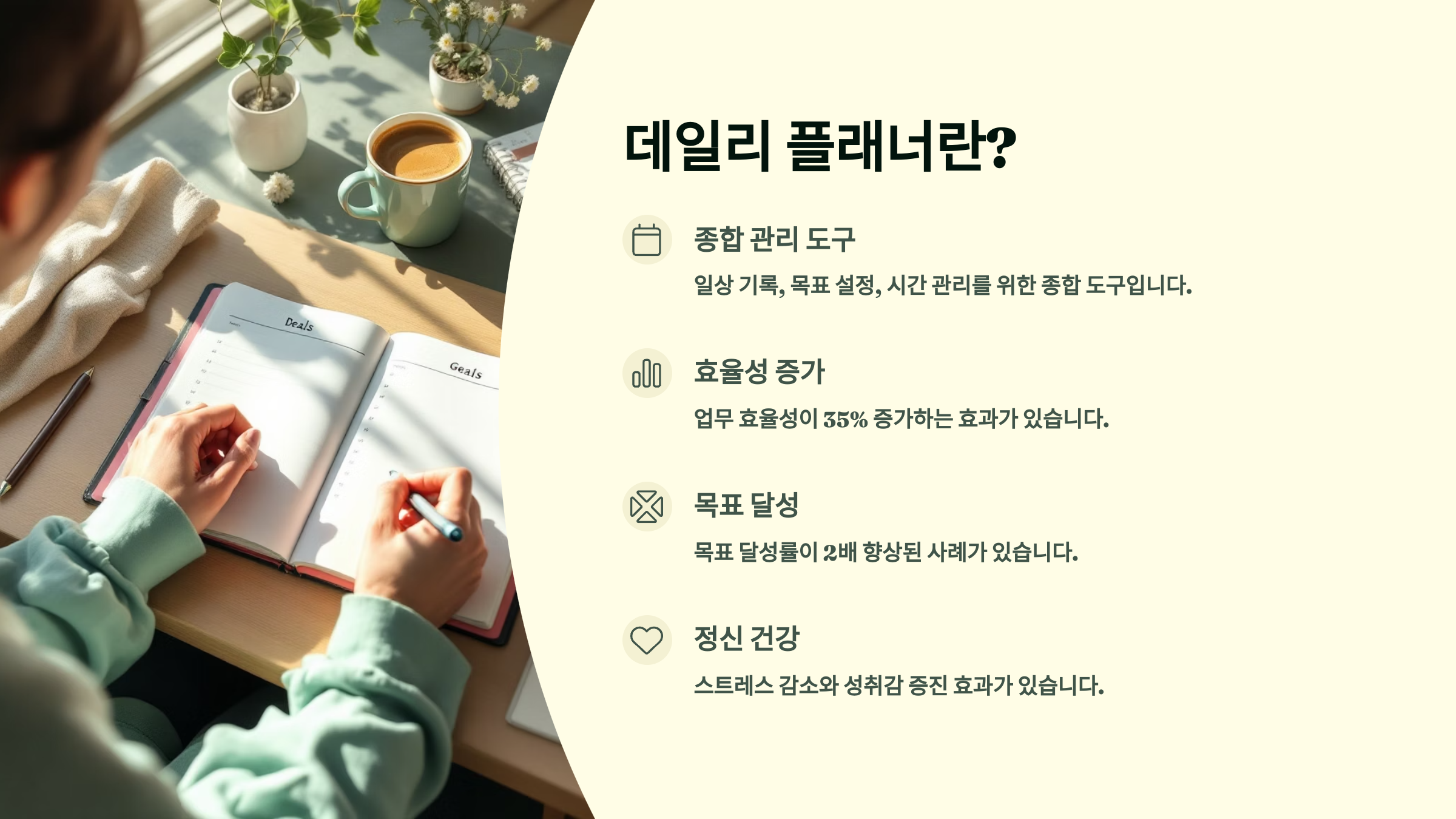결론적으로, 데일리 플래너는 단순한 일정관리 도구가 아니라 습관 관리, 목표 달성, 자기반성까지 모두 가능한 인생 매니지먼트 도구라고 할 수 있어요. 하루 5분의 기록이 1년을 바꾼다는 말, 정말 맞는 말이에요. 💪📘