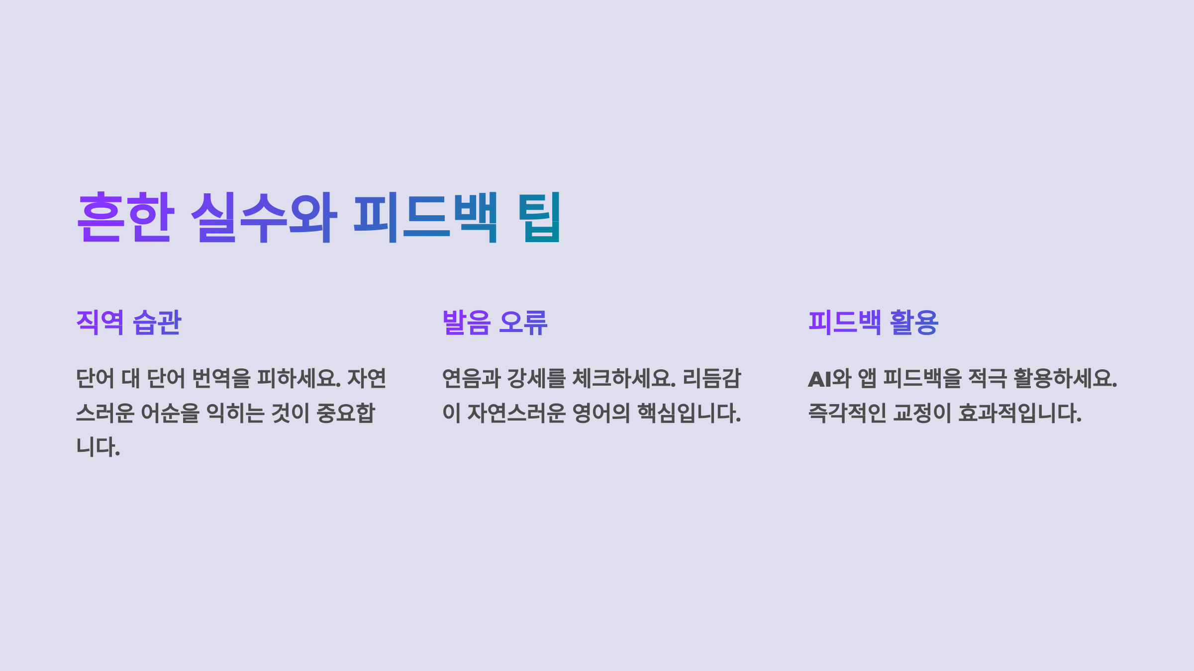 - 🛠️ 해결: 녹음 → 원어민 비교 → 수정 필수!