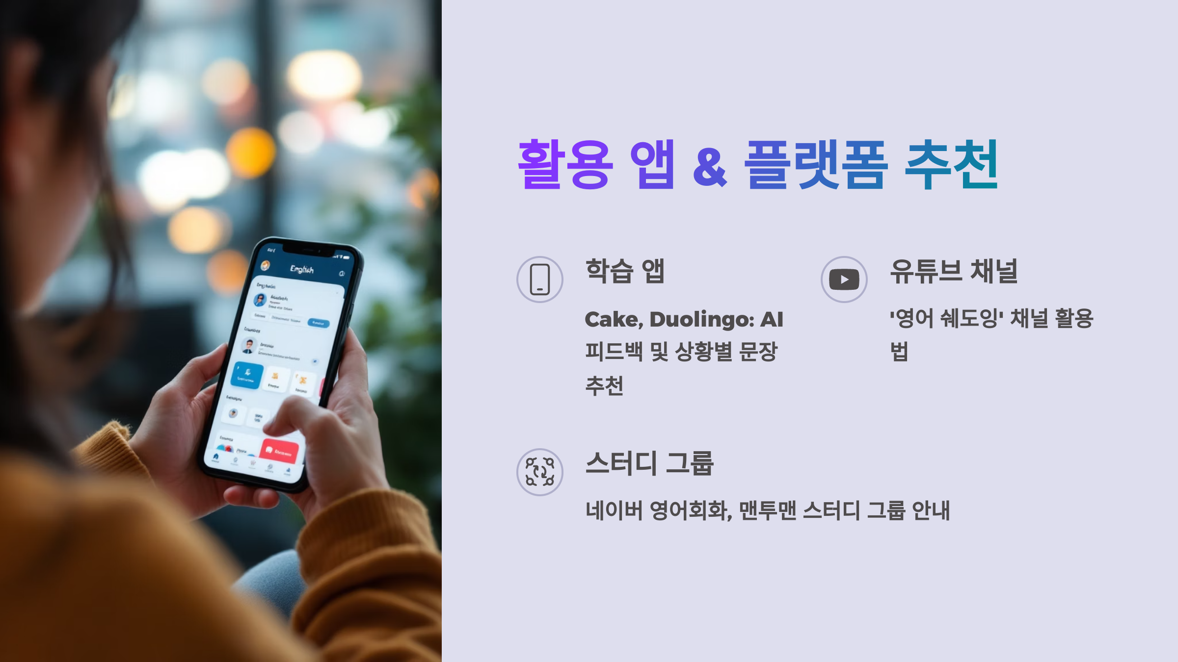 다음 섹션에서는 📱 활용 앱 & 플랫폼 추천 1일 1문장 습관을 쉽게 유지하게 도와주는 영어 앱들을 소개할게요! 📲📘